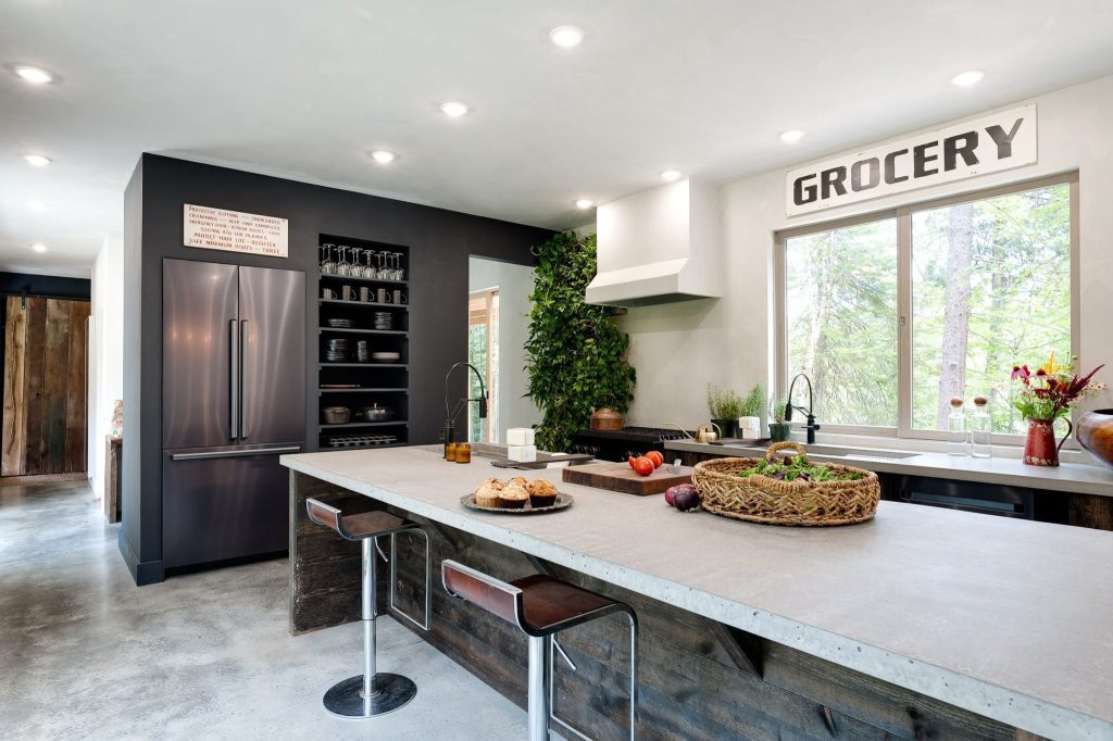 Description: In floor radiant heat with polished concrete floors, oversized single attached garage, dacor modernist black stainless appliances, custom concrete counters, LED lighting, HRV system, zero voc paint and stain, soapstone wood stove, 6 person hot tub, fir ceilings, barn wood walls, custom distressed wood cabinets, reclaimed materials, turn key frame to fork Haas Habitat furniture package.