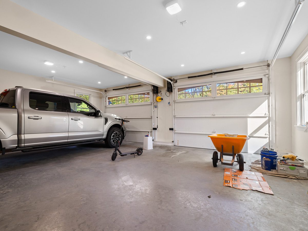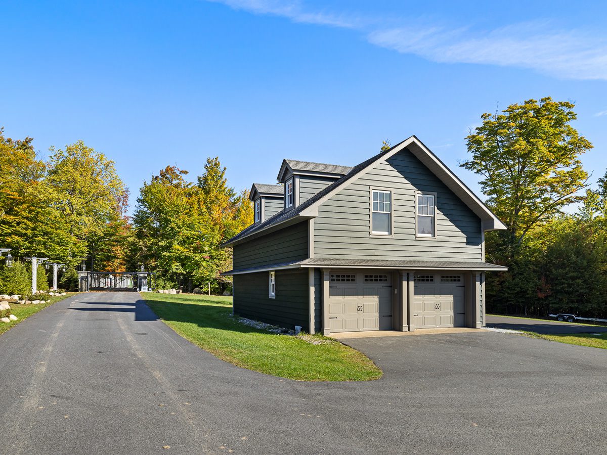 The upper level of the detached garage presents an opportunity for a home gym, studio, or additional office space.