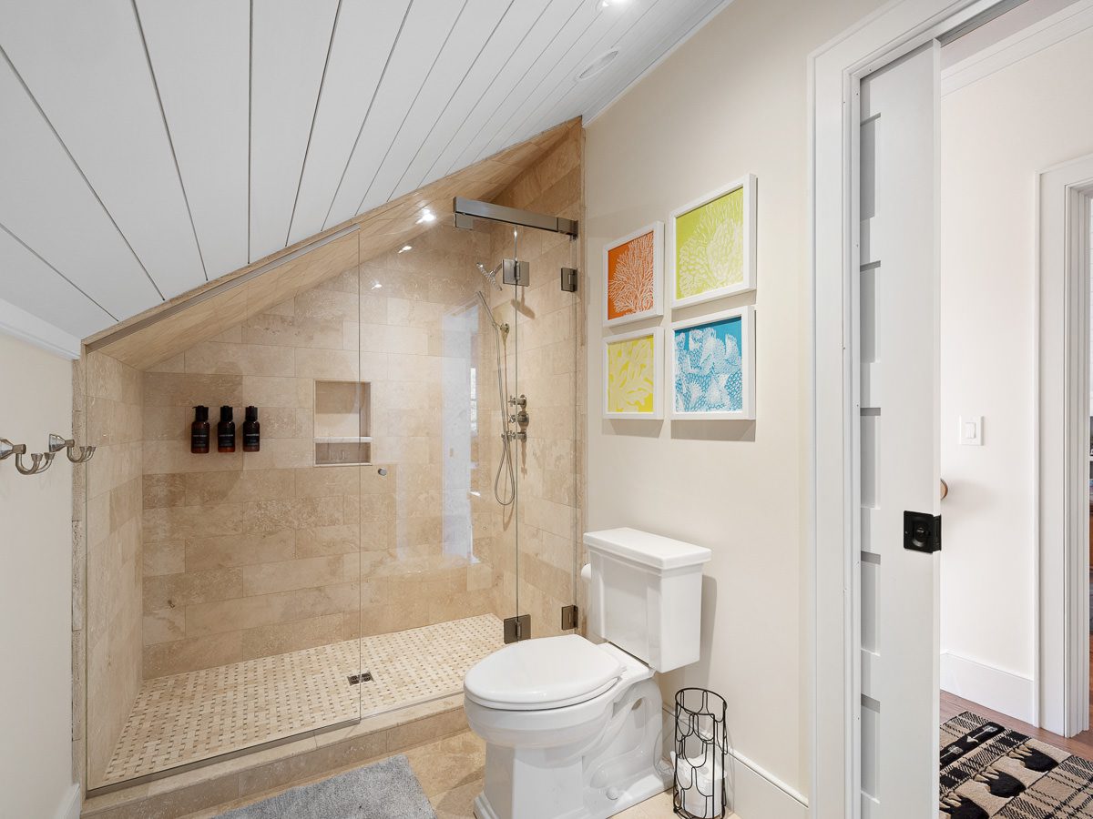 The footprint of the main home was reimagined to enhance both living and entertaining spaces. The second floor and the signature Pub Room were enlarged, creating an expansive first floor gathering area and private outdoor porches off two of the upstairs primary suites.