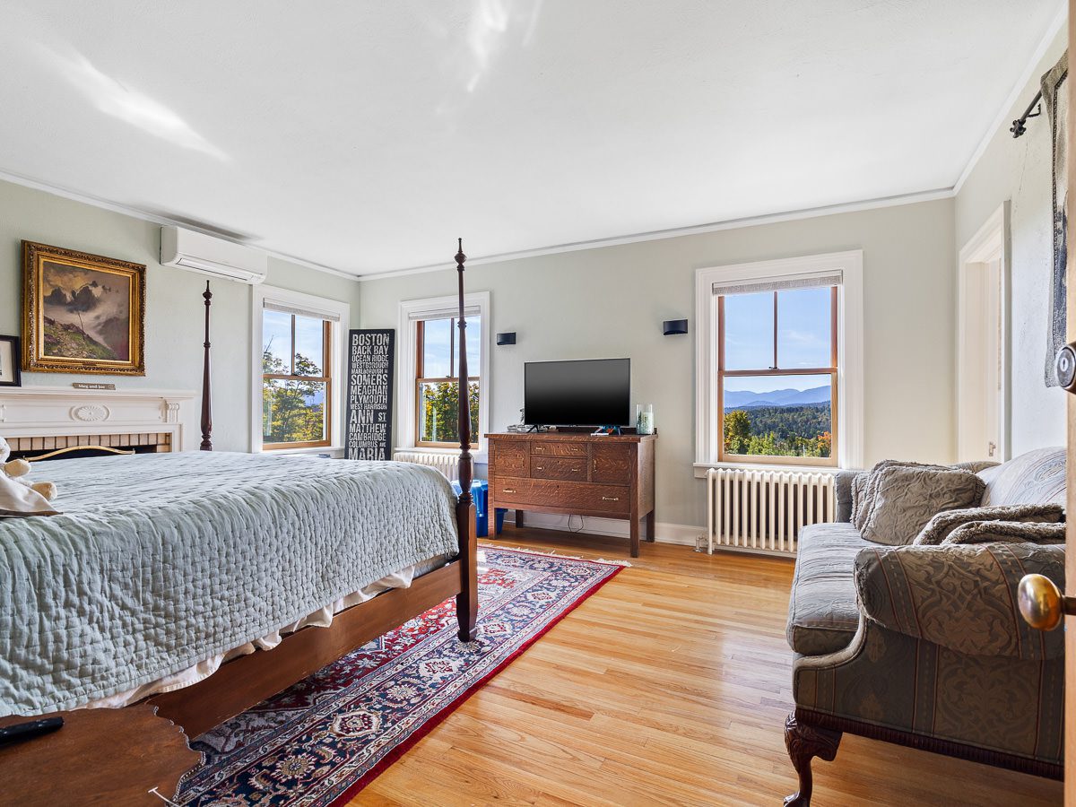 In keeping with traditional Colonial design, two staircases lead to the second floor, where six bedrooms are thoughtfully arranged—three with private en suite baths—along with a laundry room and additional shared bathroom. The primary suite offers sweeping views, a large walk-in closet, a private porch, and a luxurious bath complete with sauna. The third floor hosts two generously sized bedrooms with a shared, fully renovated bathroom.