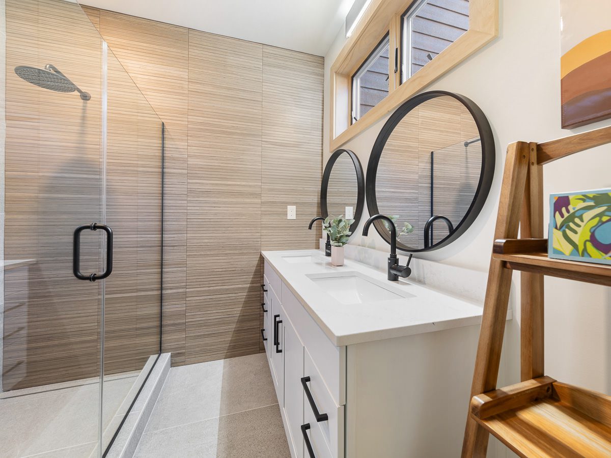 Thoughtfully designed with clean lines and top quality finishes, this 3-bedroom, 3.5-bath layout offers 1,800 square feet of interior space and 500 square feet of outdoor decking across two levels. Each bedroom includes a private en suite bathroom, and the home features wide plank white oak hardwood flooring, custom Italian tile-work, Grohe fixtures, and a soaring cathedral ceiling that fills the main living area with natural light.