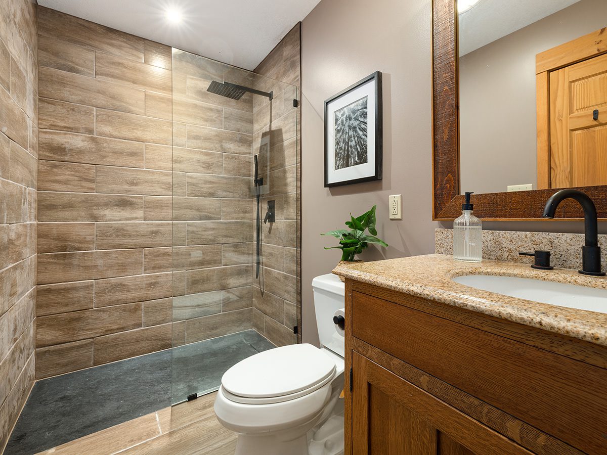 Inside, the great room with passive-solar southern exposure, 33’ vaulted ceiling and impressive stone fireplace creates a dramatic yet inviting gathering space. The open layout connects to a spacious dining area and Chef’s kitchen with Viking stove, granite counters, and radiant in-floor heat. Upstairs are three bedrooms and two newly renovated baths, including a spa-inspired primary suite. The walkout lower level- with one stall garage and private entrance- offers a fourth bedroom, additional bathroom, and flexible open space. The dedicated mudroom with built-in cubbies and a ski tuning bench keeps gear organized for a ski-in/ski-out lifestyle.