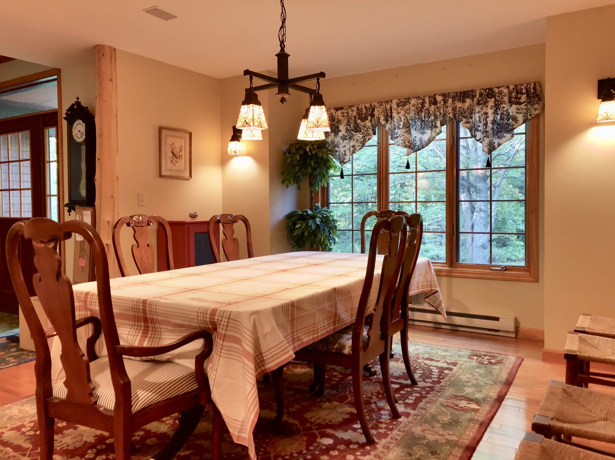Birch Tree LOJ is a very spacious, quiet home nestled up in the trees of Lake Placid just 2 miles from downtown. It is a 5BR/3.5BA home that sleeps 12 people comfortably. There are 2 king master suites, 2 rooms with queen beds and a kids bunk room with 2 full beds. All bedrooms have ceiling fans and individual thermostat for heat. Both king suites have TV’s with ensuite baths. There is also a fun game room with ping pong and rapid basketball shooting. Fully equipped kitchen with 5 seats at the counter which opens to the deck. The formal dining room seats 10 and is perfect for hosting family dinners. The living room gives you the Adirondack feel with vaulted ceilings which has a large sectional couch with a 60″ TV and a 2 sided fireplace (electric, just the click of a button). There is a wonderful deck in the back of the house which faces west for the afternoon sun and sunsets. The property sits on the Jack Rabbit Trail which you can get to Lake Placid in less than 2 miles.