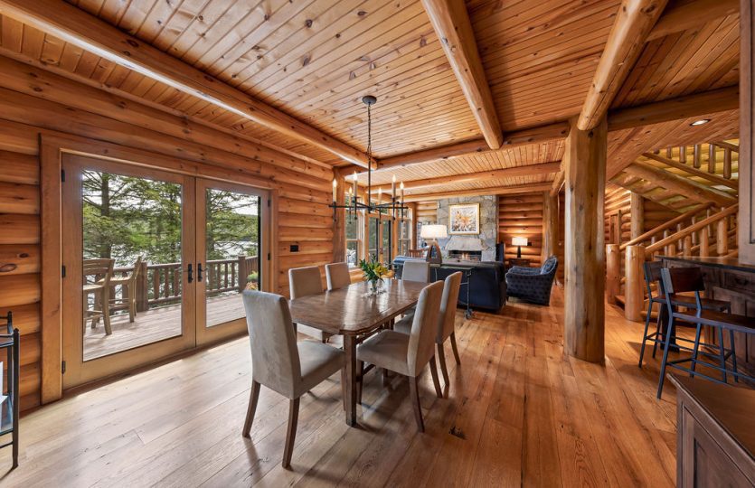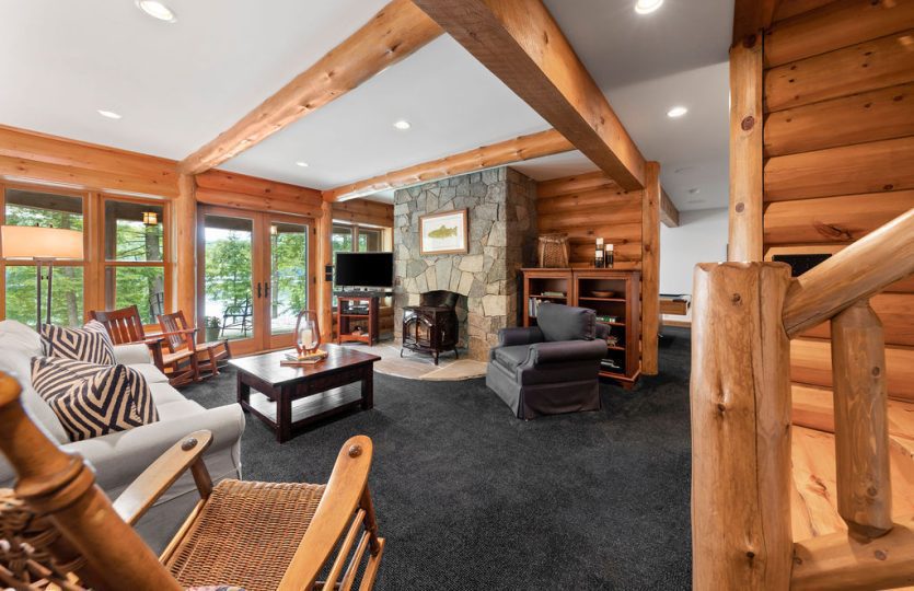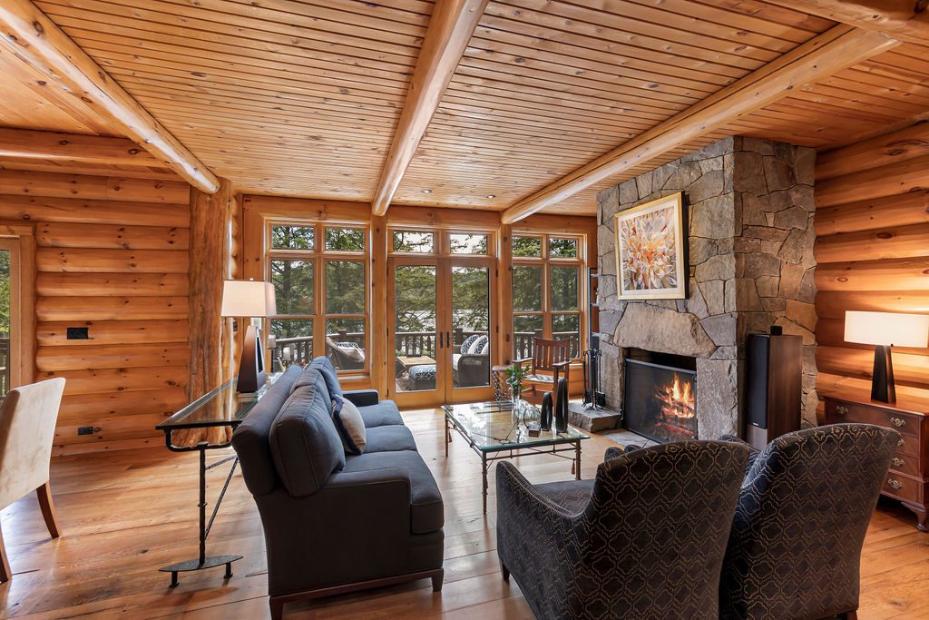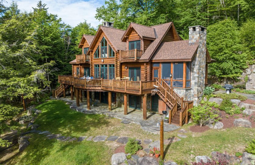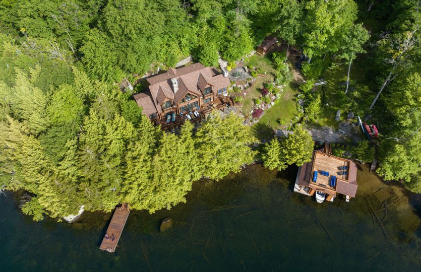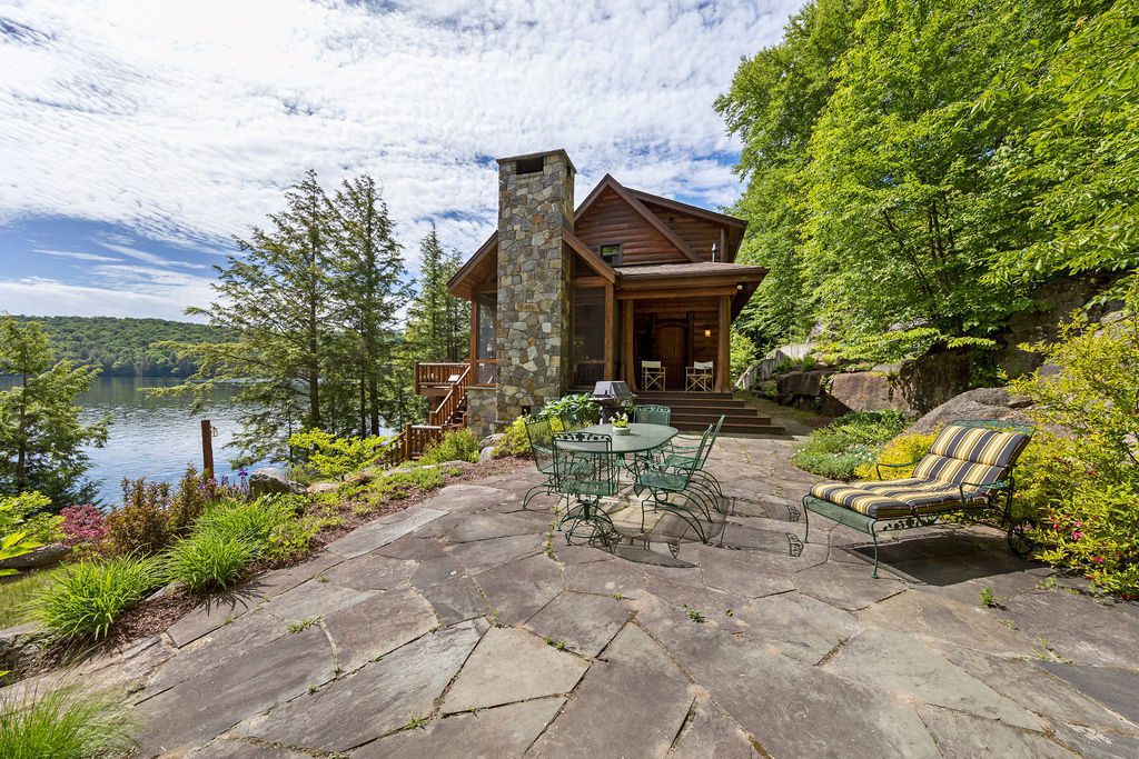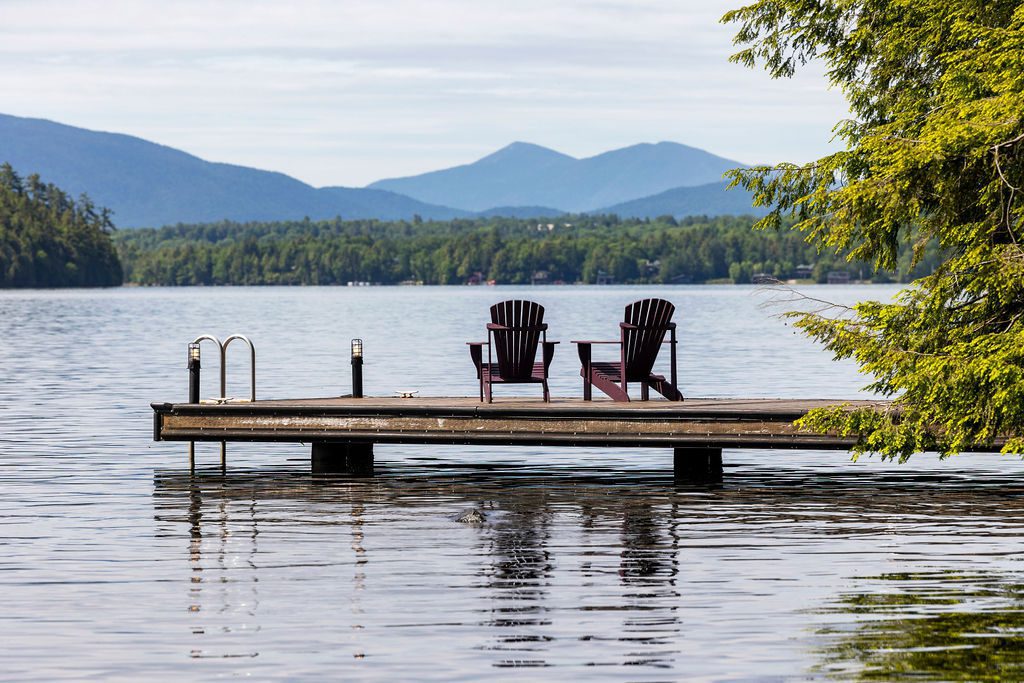 Nestled on the West Shore of Lake Placid Lake, Camp Heron Cove is a stunning, custom-designed 4100SF 4BR, 3BA Wisconsin Log home. Access via boat most of the year, or a shoreline trail in the wintertime, this luxurious winterized property offers a chance to seriously get away. A true refuge! With 254′ of shoreline and 41 acres of hardwoods backing up to State Land, Heron Cove is perfect for outdoor enthusiasts hoping to swim, boat, hike, or simply take in the panoramic lake and mountain views. Across the water is Moose Island, one of the biggest islands in the Adirondack Park, and one of the least developed, presenting a “Forever Wild” view. From the swim dock looking south is an equally impressive landscape: the Southern Range, boasting some of the Park’s highest Peaks. Whether enjoying the stars gathered around the outdoor firepit, relaxing on the upper deck of the newly built 2 slip boathouse, jumping from the swim dock into the waters of one of the cleanest lakes in NY, hiking out your back door, watching the hummingbirds in the perennial garden, or taking an evening boat ride, Heron Cove presents it all. Once you step inside this thoughtfully designed home you might hope for a rainy day to enjoy all of the comfortable interior spaces. Highlighted by antique oak flooring, unique wood beams, custom granite fireplaces, French doors, large windows, well appointed kitchen with top of the line appliances, air conditioning, built in stereo speakers, and generator. Lakeside deck and screened in porch with outdoor fireplace for alfresco entertaining. Walkout lower level complete with a wine cellar, gym and billiards room. Two storage buildings with potential for additional structures. A short boat ride to Whiteface Club and Resort for dining, golf or tennis.
